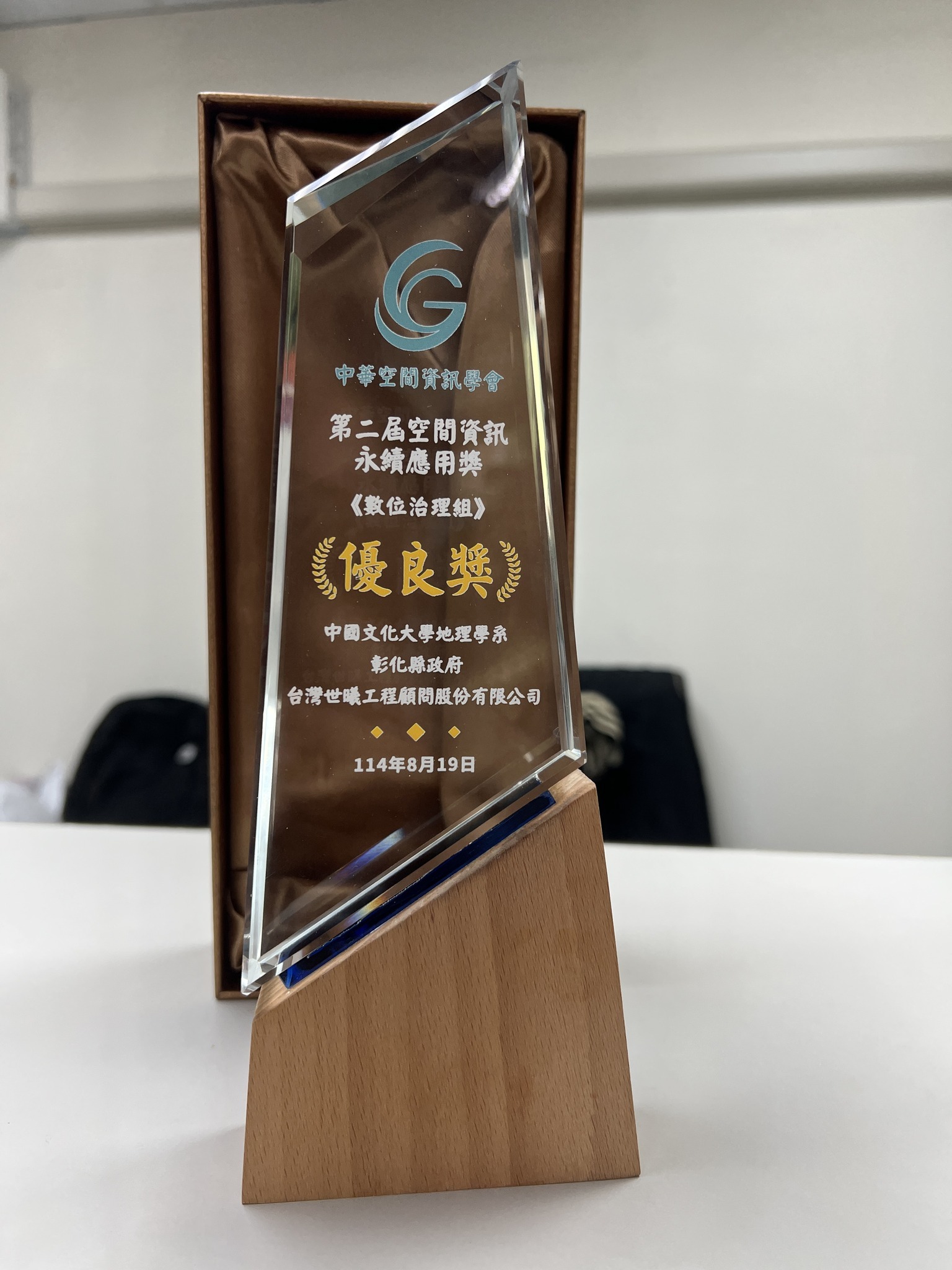地理系與產學合作廠商台灣世曦工程顧問公司以及彰化縣政府參與中華空間資訊學會【114年第二屆空間資訊永續應用獎】榮獲「數位治理組」優良獎!本系長期與產學合作夥伴台灣世曦工程顧問公司合作,培養優秀空間資訊人才,本次獎項由台灣世曦工程顧問公司許家成副理與陳鑫智系友代表上台領獎,感謝台灣世曦長期提供本系產業合作與實習機會,培養出系上多位人才,為空間資訊產業的發展一起努力!【2025.08.19】
